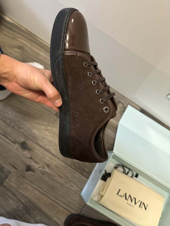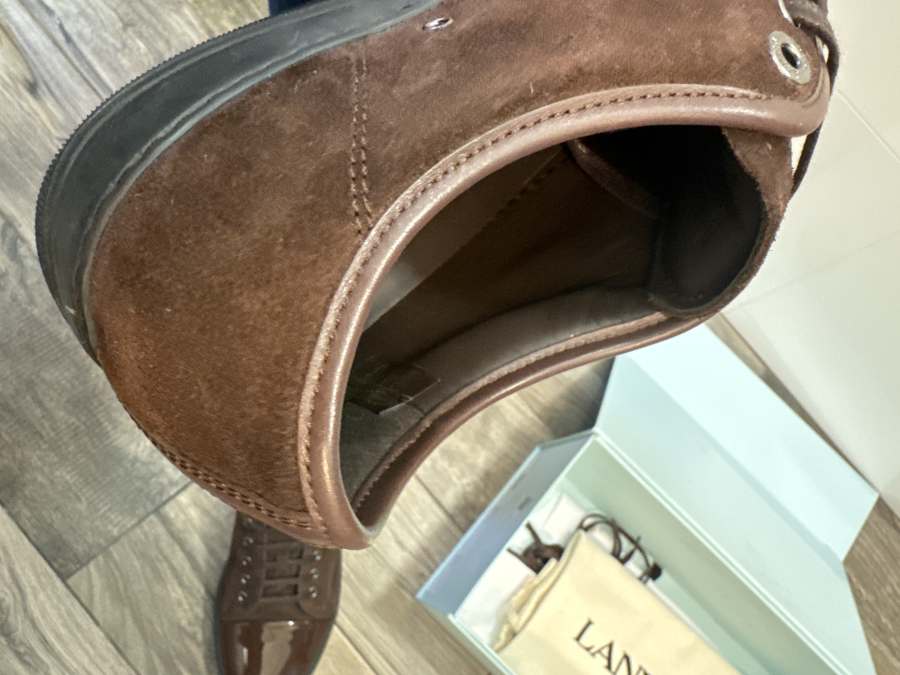 Nu säljer jag mina sprillans nya lanvins. Jag köpte de här på Sicuro Fashion, de passade tyvärr inte så jag säljer vidare dem. Skorna är i färgen brun med svart sula och har brun patent cap toe.