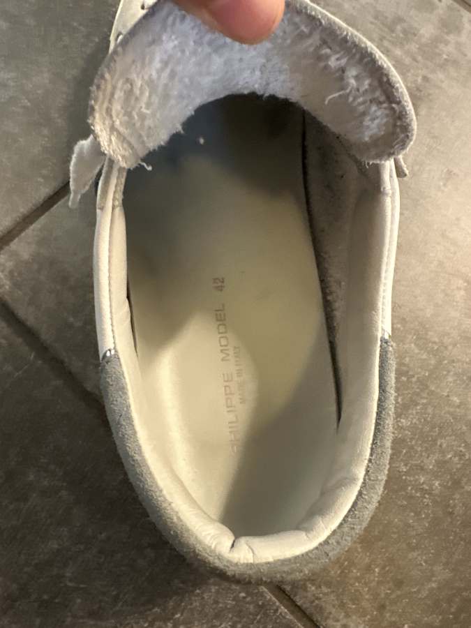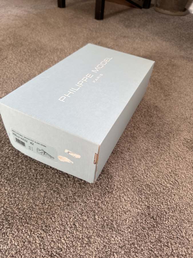 Nu säljer jag dessa Philippe Model PRSX skorna. Skorna är vita med ljusblåa detaljer och slit detaljer. Skorna är sparsamt använda och har används i ungefär 4 månader.